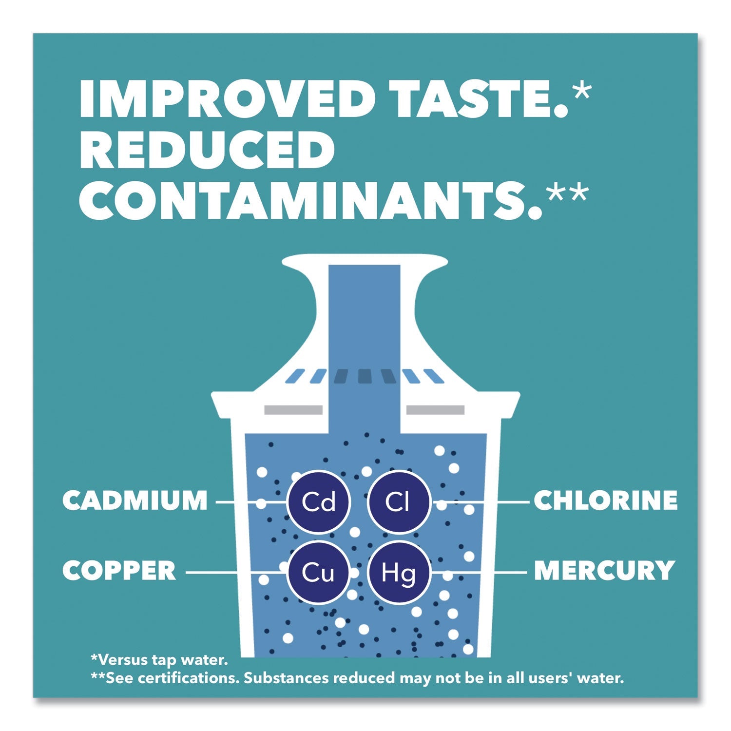 Keep tap water healthier and tasting better when you regularly change your Brita replacement filter. Made to fit all Brita pitchers and dispensers, this replacement filter reduces copper, mercury and cadmium impurities that can adversely affect your health over time, while cutting chlorine taste and odor to deliver great tasting water. Designed to leave no black flecks in your water and with no pre-soak required, the Brita filters are quick and easy to use. Change your Brita filters every 40 gallons or approximately two months for best performance. Ideal for use in restaurants, cafeterias and other commercial facilities. Start drinking healthier, great tasting water with Brita today.
