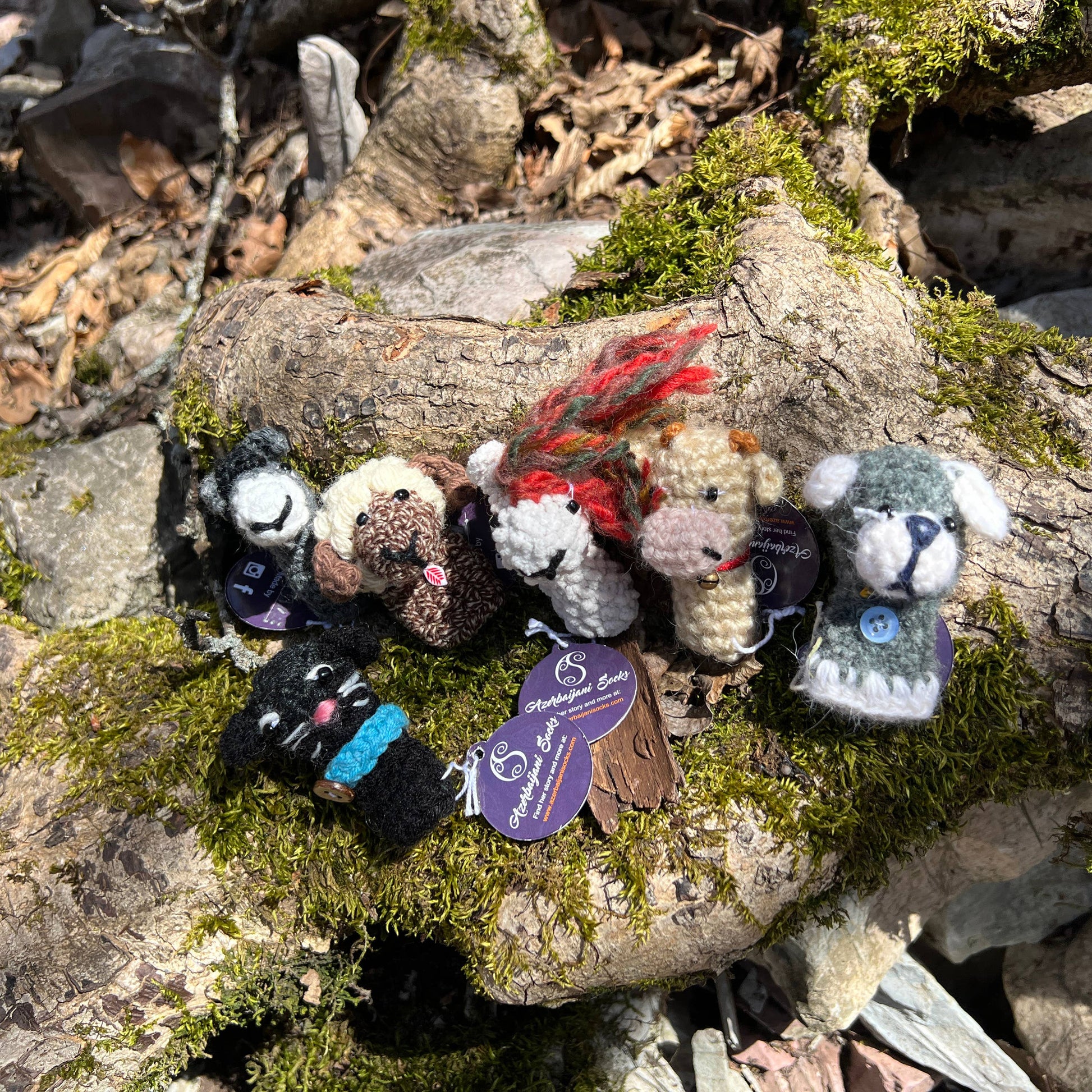 Each animal is charming in their knitted detail and are awaiting a child’s love to make them “come alive”. These puppets are ideal for children ages 2-5. Caution: each animal is made with tiny glass-bead eyes. These items may come off with excessive use, and could be swallowed. However, these items are so small they do not pose a major choking hazard.