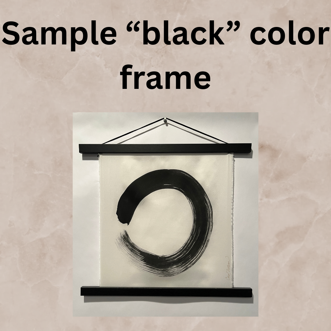 Image size is 12” x 22”. 100% silk habotai (china silk). Silk dyes are permanent. However, it is not recommended to hang this in direct sunlight. Please choose your frame color at check out. Grey, Wood, or Black.