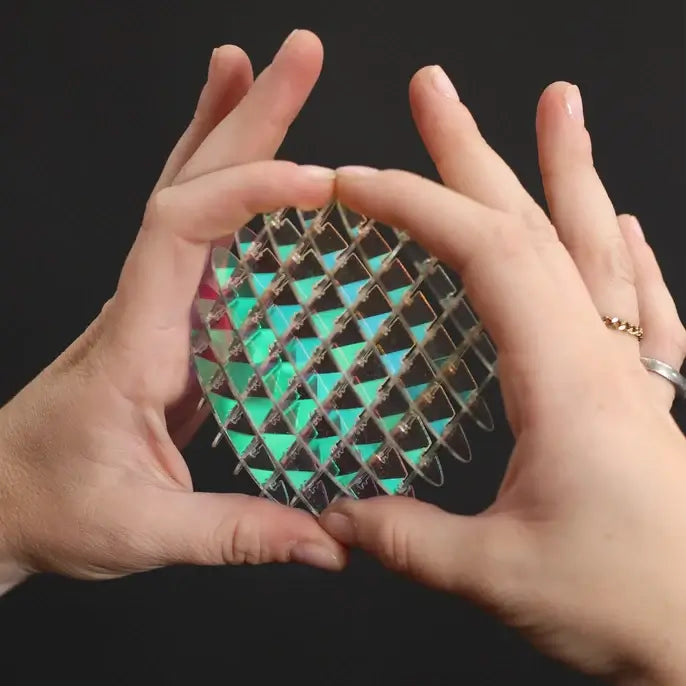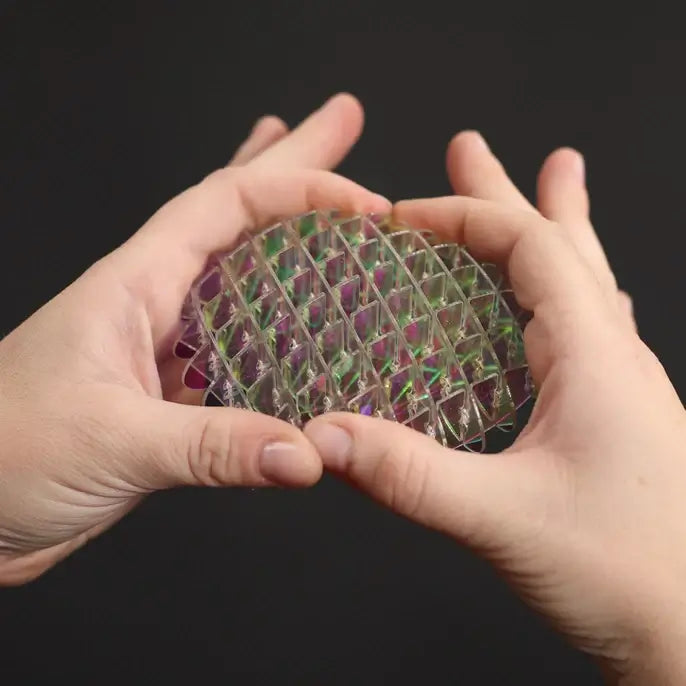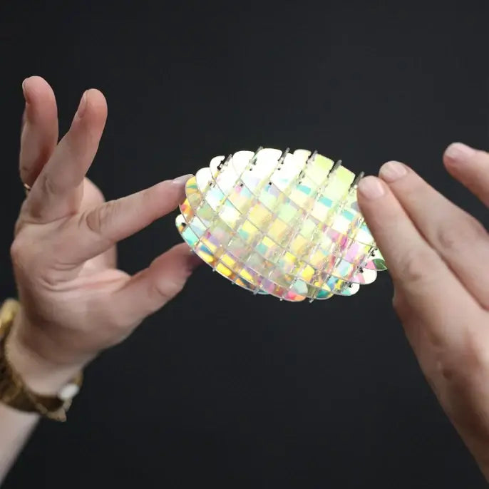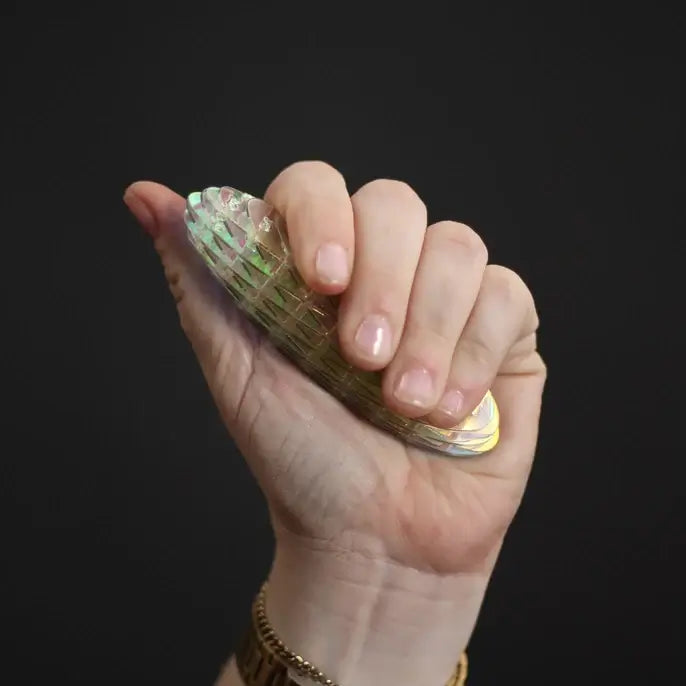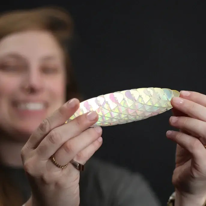 Perfect for mini hands and to carry around. Kids (and adults!) love to bend, flex, squish and unfurl it all while seeing the iridescent "unicorn" material shimmer. Just like the inside of a sea shell!