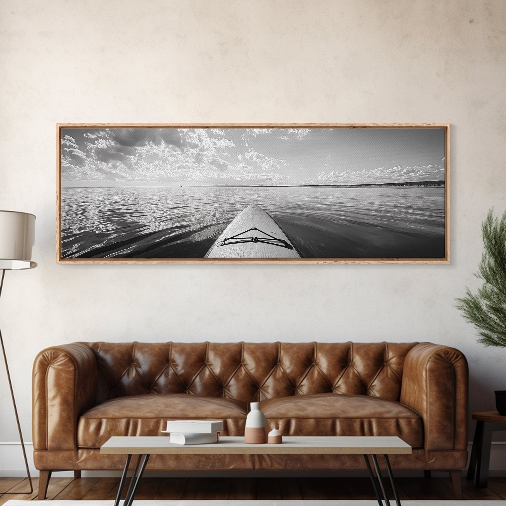 Paddleboard Ocean View, Tranquil Water Scene, Minimalist Adventure, Canvas Print, Coastal Wall Art, Calming Decor, Bedroom Zen Style