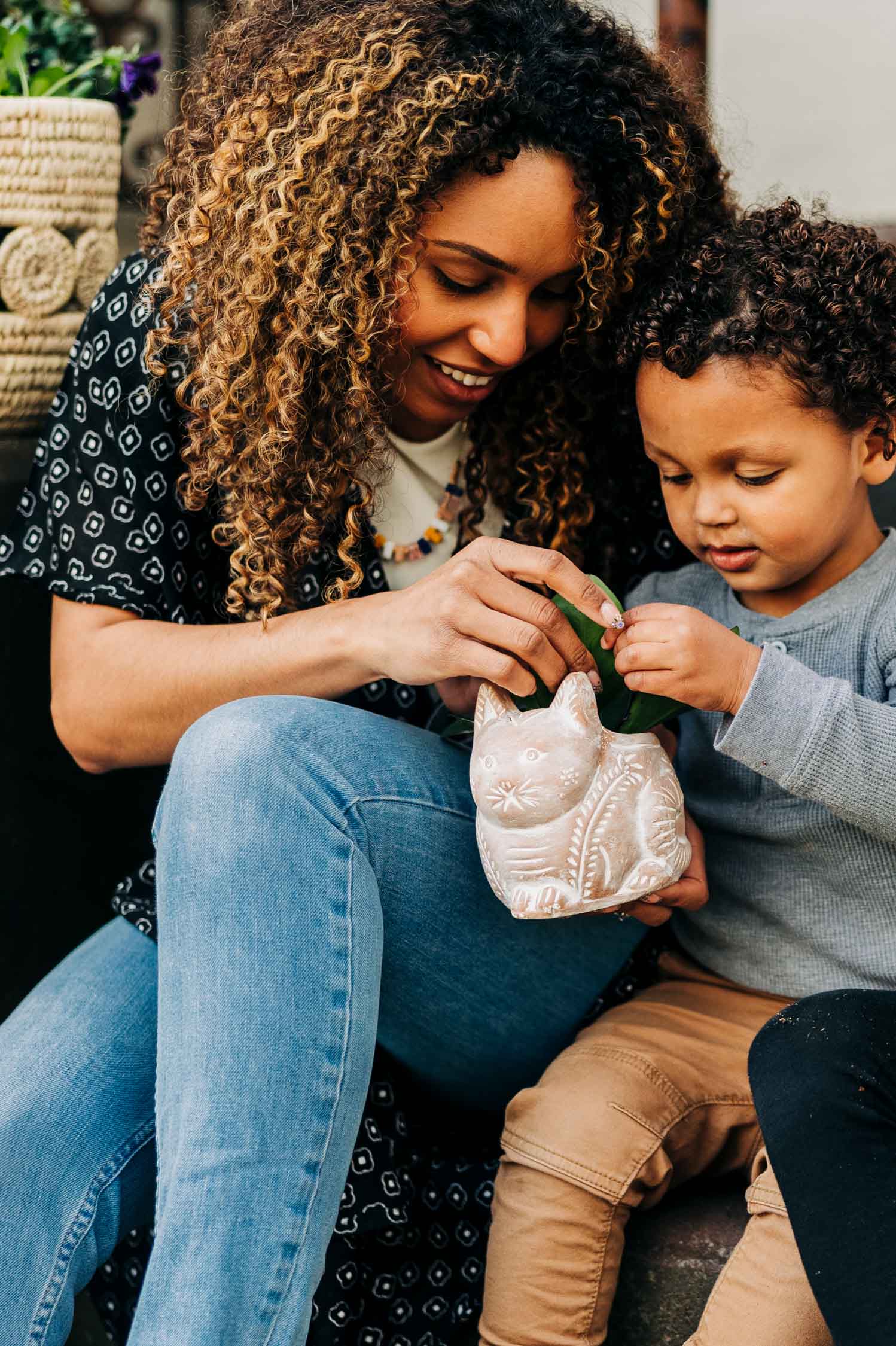 Make a plant statement with the Petite Crouching Cat Planter from Bangladesh. Makers from Corr—The Jute Works showcase their skill in ceramics by crafting each white-washed terracotta planter by hand. For use indoors or outdoors.